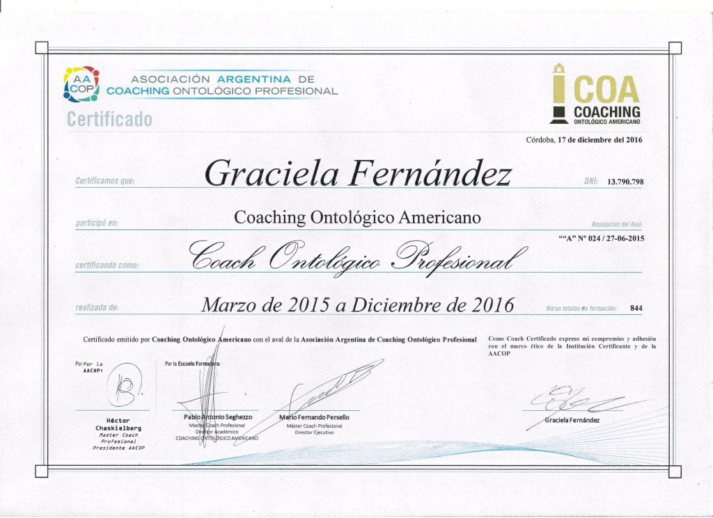En la escuela donde yo certifiqué, Escuela Coaching Ontológico Americano , le ponemos el cuerpo y el alma a todo lo que aprendemos. Durante dos años, vivimos un proceso de transformación personal en el que vamos sumando los conocimientos  y las prácticas (sesiones de coaching) necesarios para ejercer con seriedad y compromiso la profesión. Los egresados somos Coaches Profesionales en servicio, nos hemos formado para servir a la sociedad, las personas, las organizaciones y empresas. Para nosotros, el coaching ontológico es más que una disciplina o una profesión, es una ética de vida.